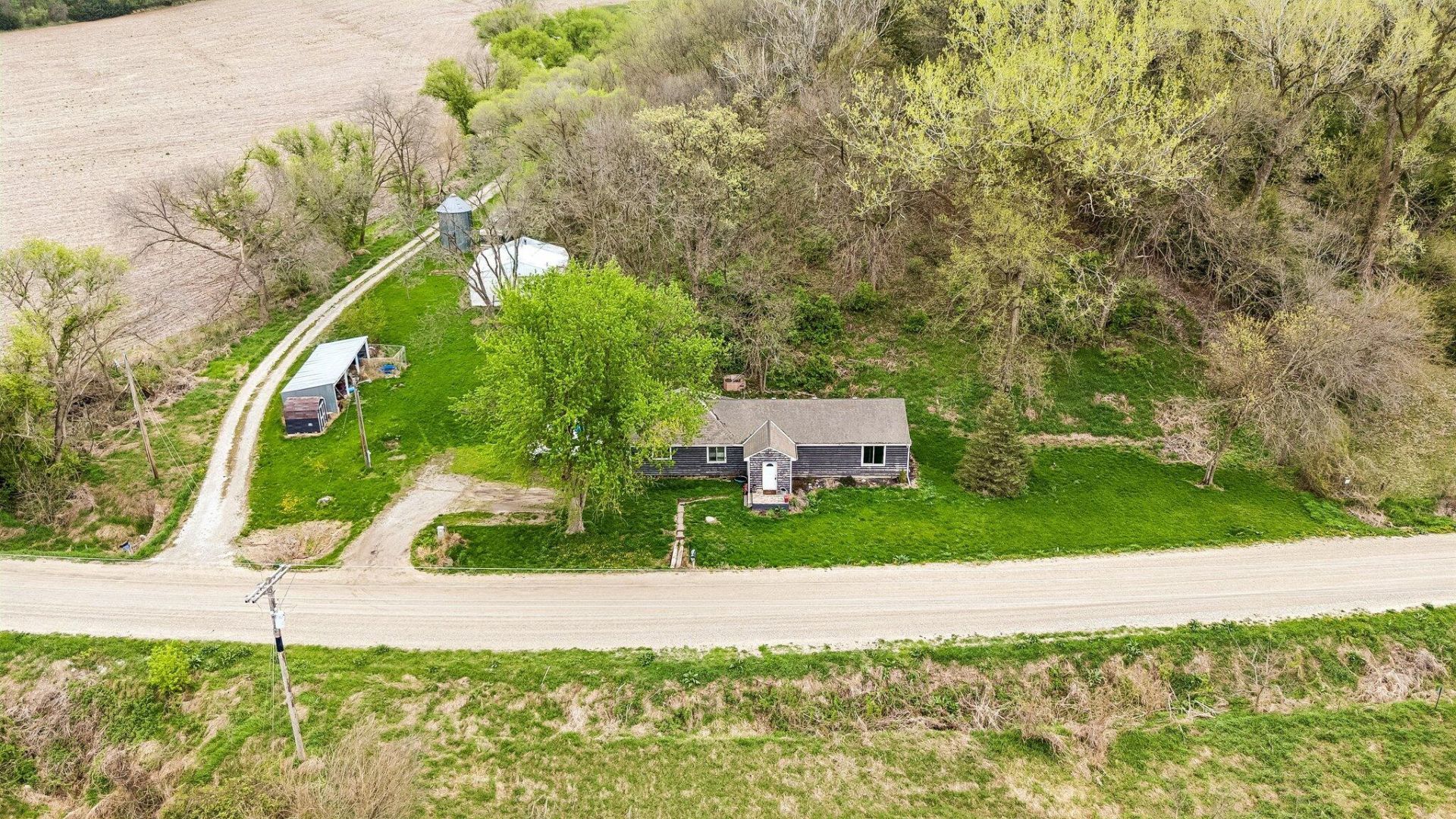 Escape to the beauty of the Loess Hills with this peaceful 4.75-acre acreage just 40 minutes from Omaha and Council Bluffs! This 1 bed, 1 bath home offers two non-conforming basement rooms, a spacious family room, and a deck perfect for taking in the surrounding nature and wildlife. Outdoors, you'll find a 30x30 steel building, steel grain storage, and plenty of space to enjoy country living. A true hunter's dream with privacy, views, and room to roam! Property is being sold AS IS.