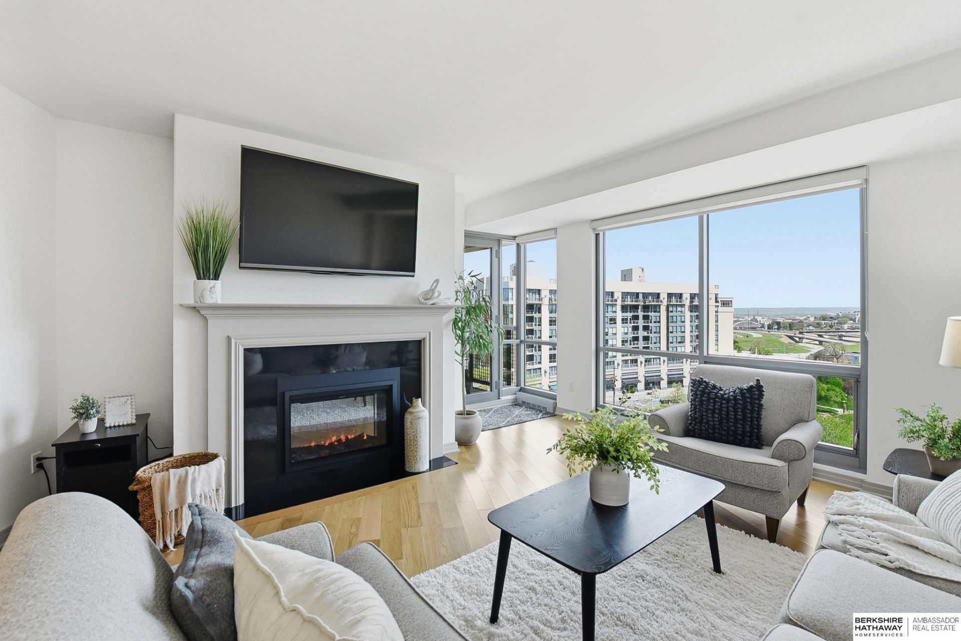 Beautiful 1-bedroom condo with stunning park views in Midtown Crossing-perfect for a low-maintenance lifestyle! Completely updated with an oversized walk-in shower, abundant storage, and all-new appliances, fixtures, countertops, and lighting. The open-concept layout offers a bright, spacious feel with hardwood floors and floor-to-ceiling windows showcasing Turner Park and downtown Omaha. The kitchen features quartz countertops, sleek cabinetry, and stainless steel appliances. Enjoy your private balcony with a gas line for grilling or the rooftop clubroom with a large patio and skyline views. Amenities include concierge, 24/7 security, heated underground parking, and private storage. Just steps from dining, nightlife, and events!